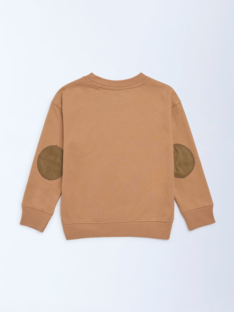 HOP Kids Boys Light Brown Embroidered Cotton-Blend Sweatshirt