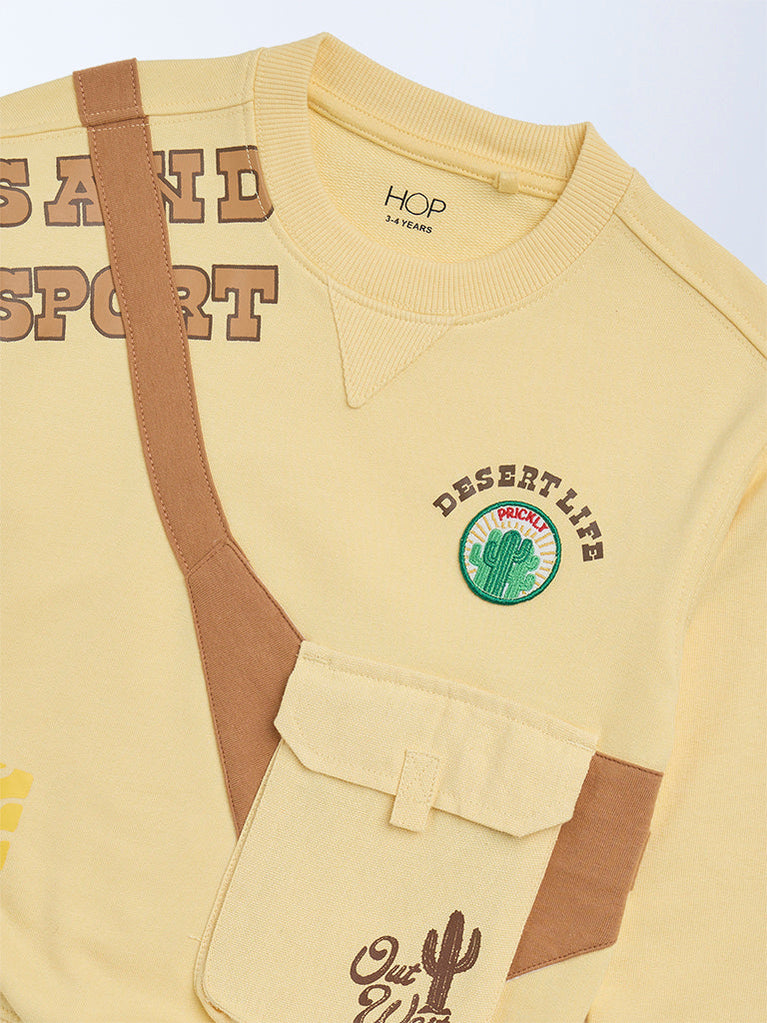 HOP Kids Boys Yellow Pouch Detailed Cotton-Blend Sweatshirt