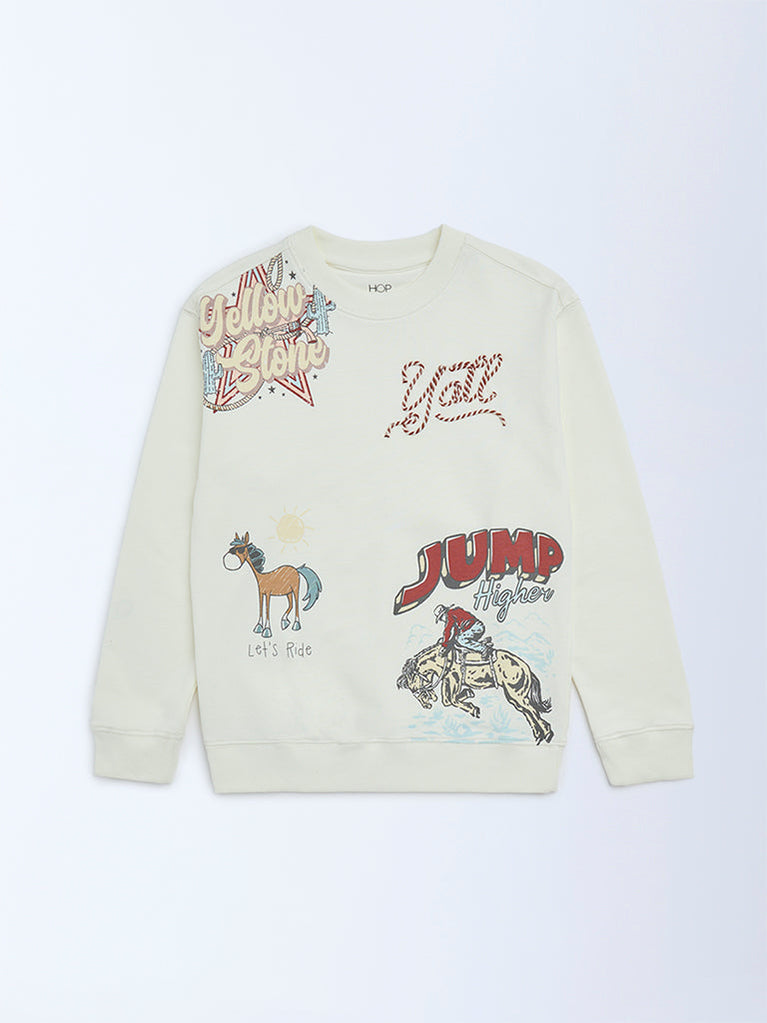HOP Kids Boys Off-White Printed Cotton-Blend Sweatshirt