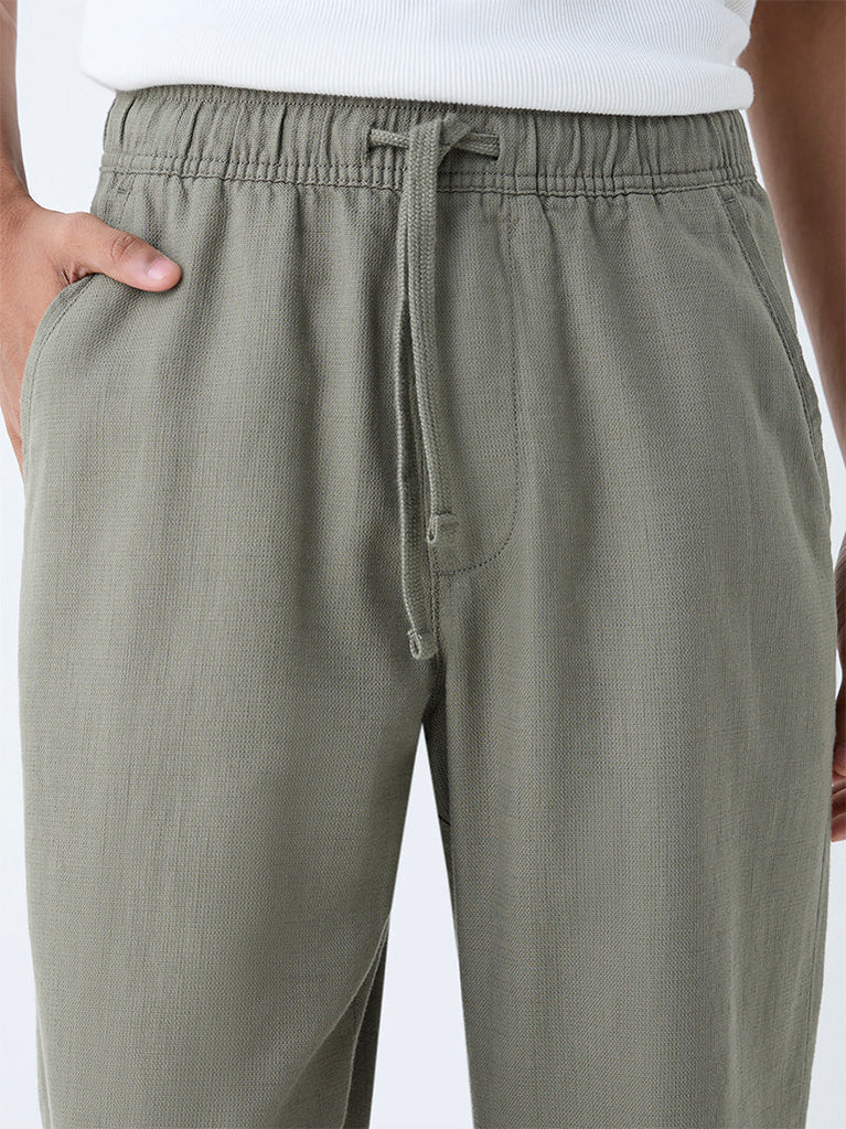 ETA Olive Solid Relaxed-Fit Mid-Rise Cotton-Blend Shorts
