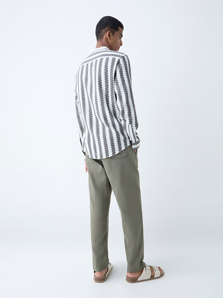 ETA Olive Stripe Relaxed-Fit Cotton Shirt