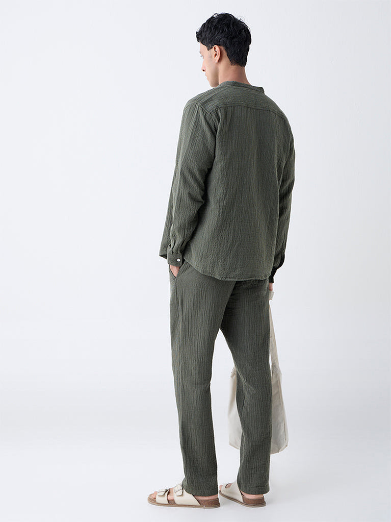 ETA Olive Textured Relaxed-Fit Cotton Shirt