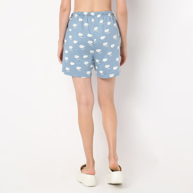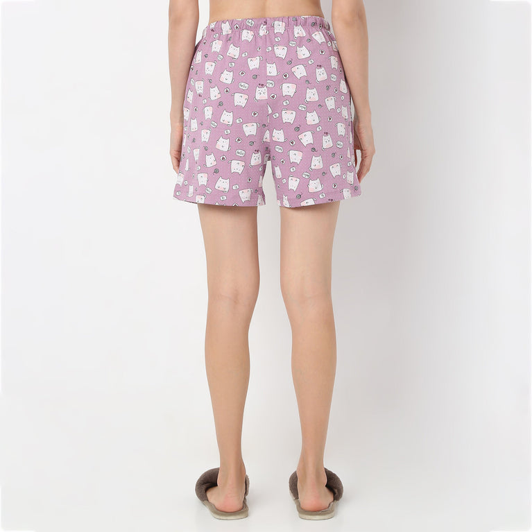 Experience the perfect blend of comfort and style with these Regular Fit Printed Above Knee Mid Rise Shorts. Crafted from 100% cotton, these shorts offer a soft touch against your skin, ensuring all-day comfort. The printed pattern adds a playful touch, making them a versatile addition to your wardrobe.