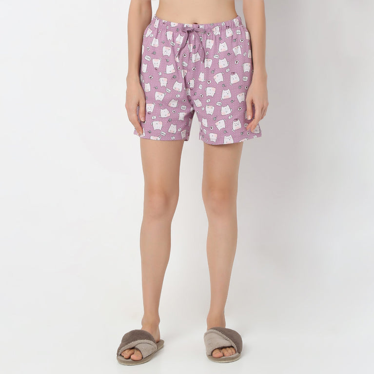 Experience the perfect blend of comfort and style with our Regular Fit Printed Above Knee Mid Rise Shorts. Crafted from 100% cotton, these shorts offer a breathable and soft touch against your skin, making them ideal for warm weather. The playful printed pattern adds a touch of fun to your outfit, while the mid-rise waist ensures a flattering fit for all body types.
