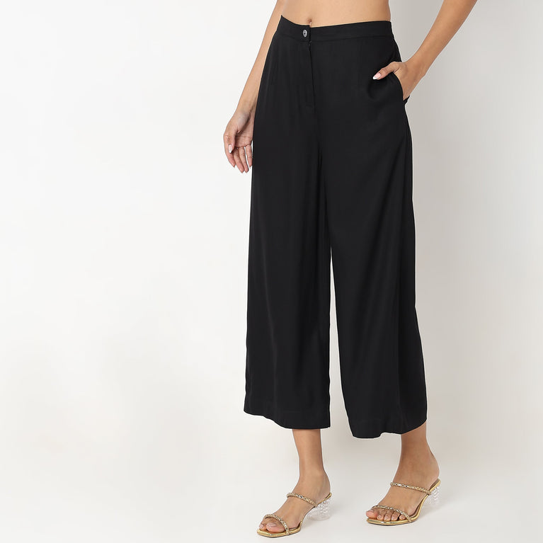 Ankle Length Flare Fit Solid Culottes