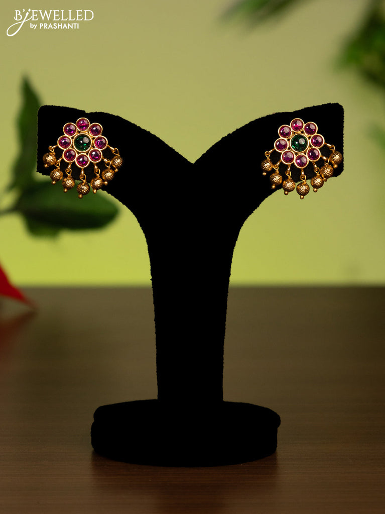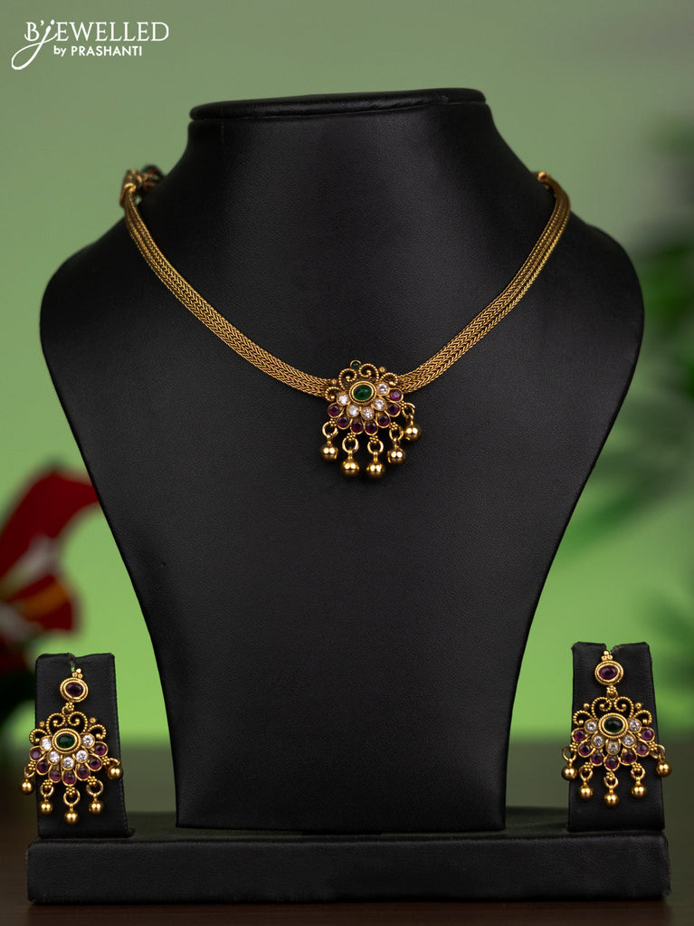 Antique attigai necklace with kemp & cz stones and golden beads hanging