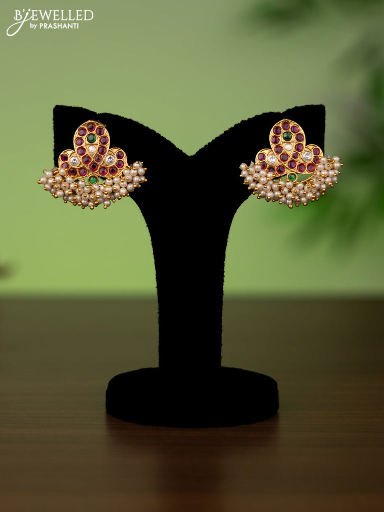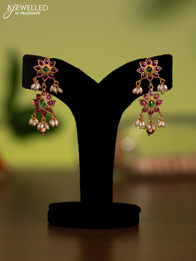 Antique attigai necklace with kemp & kumdan stones and pearl hangings