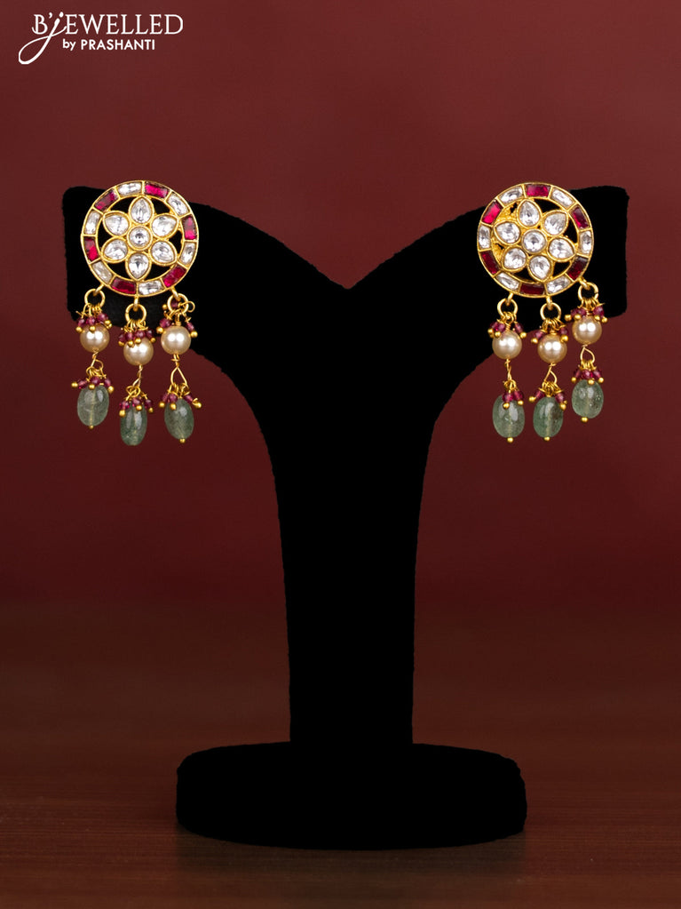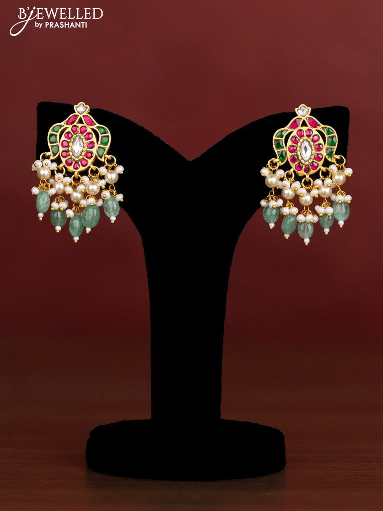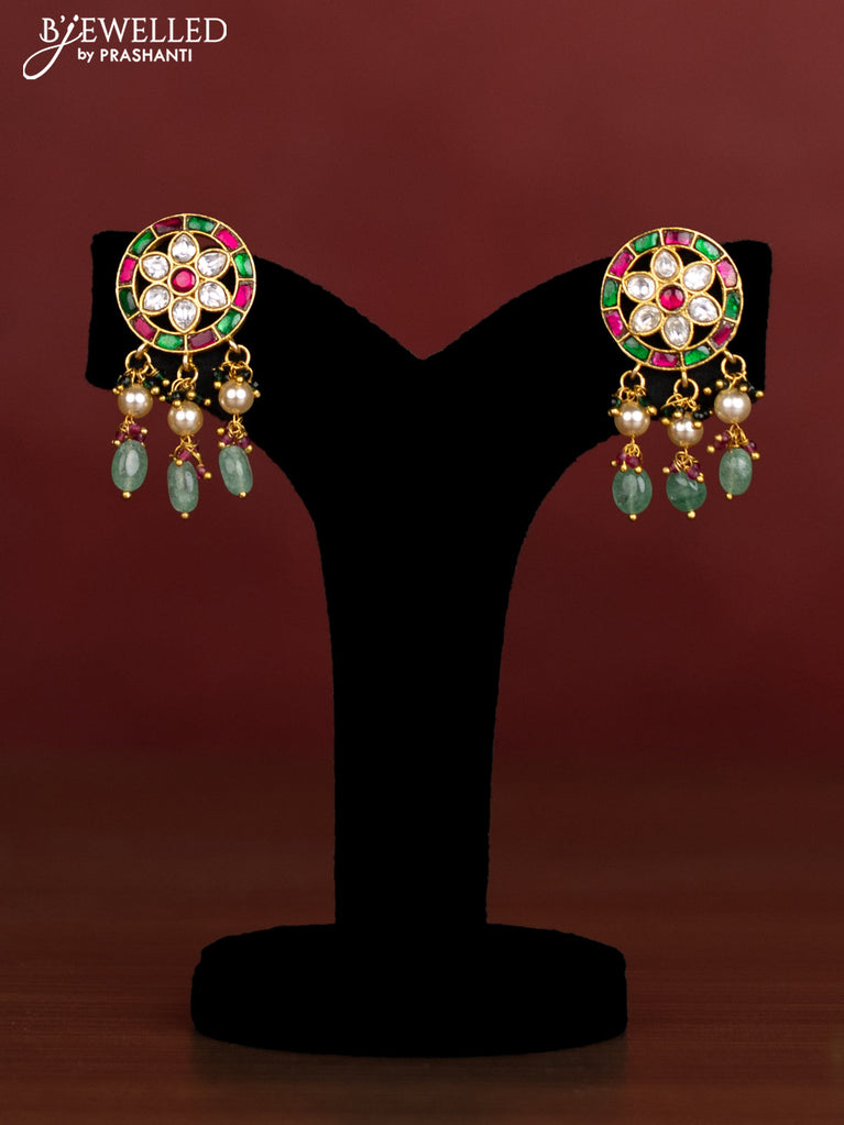Antique beaded green necklace floral pendant with jadau kundan stones and pearl & beads hangings