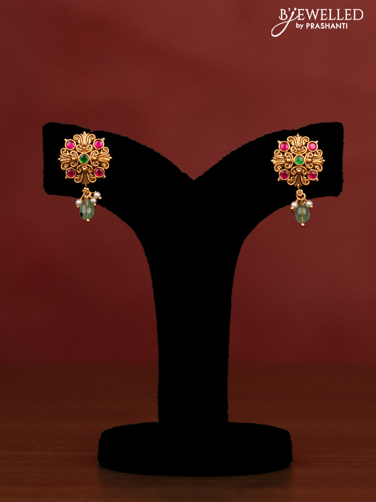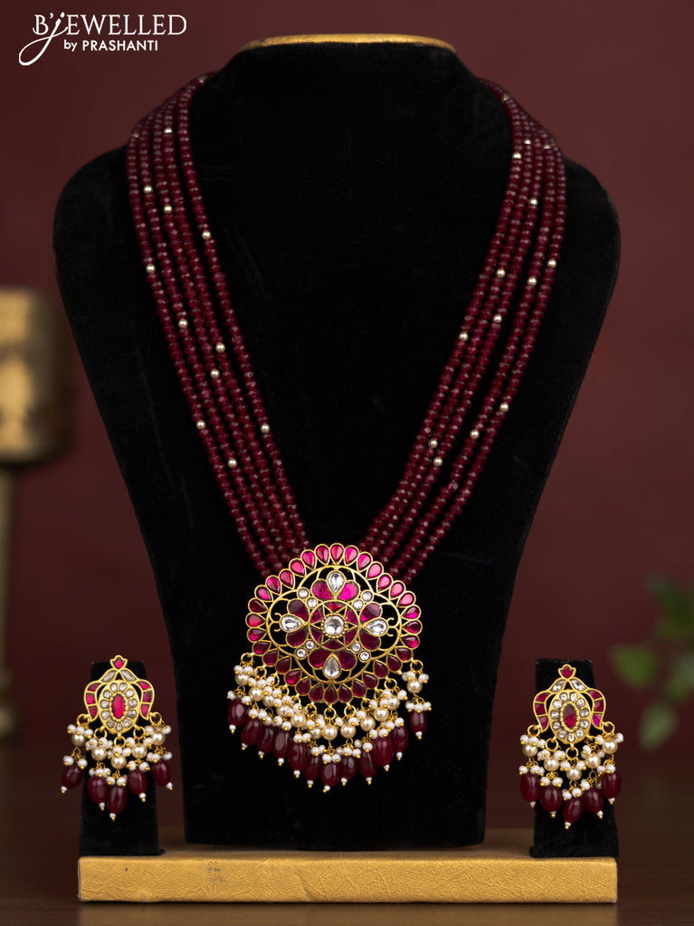 Antique beaded maroon necklace floral pendant with jadau kundan stones and pearl & beads hangings