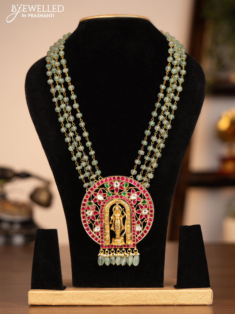 Antique beaded green necklace ram darbar pendant with jadau kundan stones and beads hanging without earrings