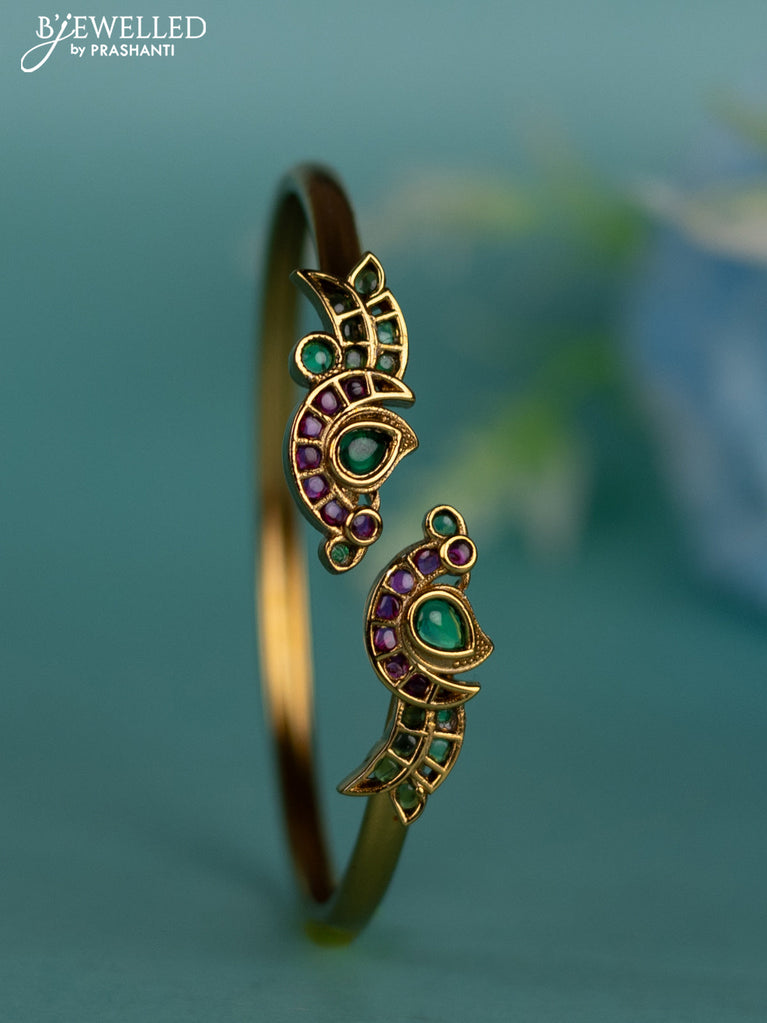 Antique bridal set manga pattern with kemp & cz stones and golden beads hanging