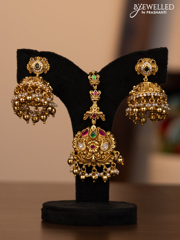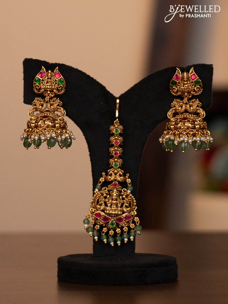 Antique combo set lakshmi design with kemp & cz stones and pearl hangings