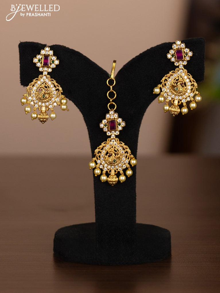 Antique combo set peacock & manga design with kemp & cz stones and pearl hangings