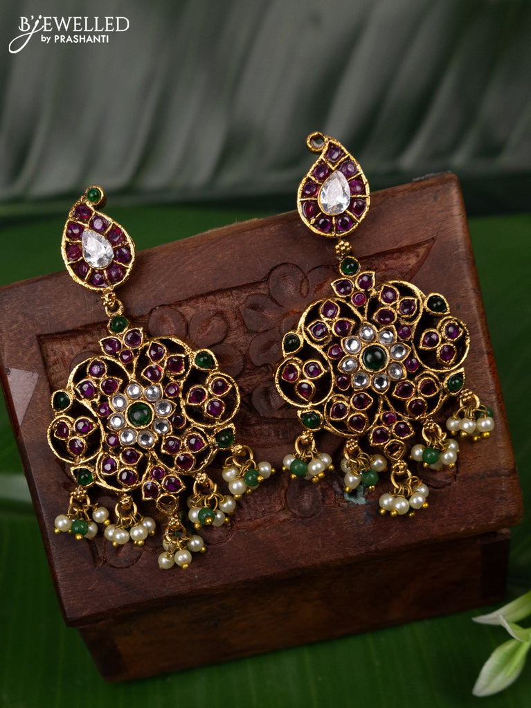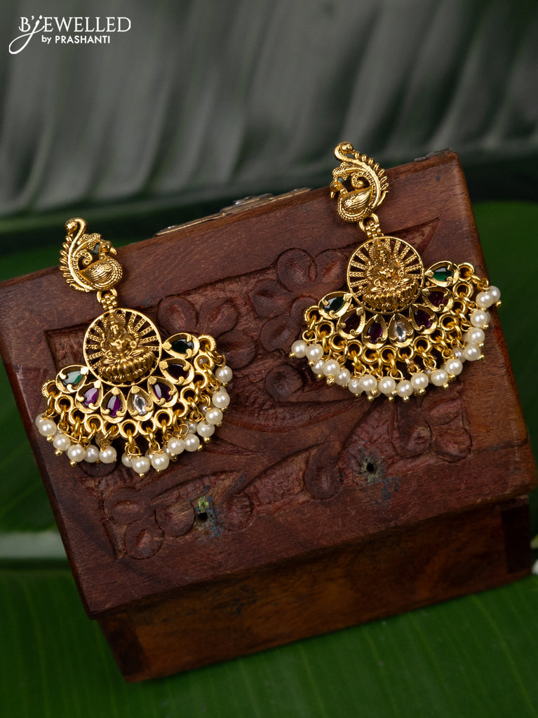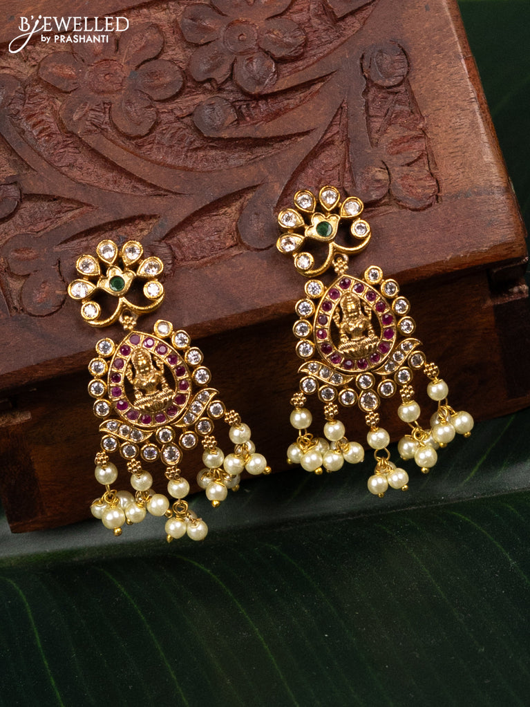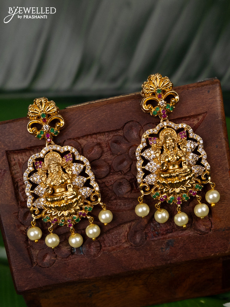 Antique earring lakshmi design with kemp & cz stones and pearl hangings