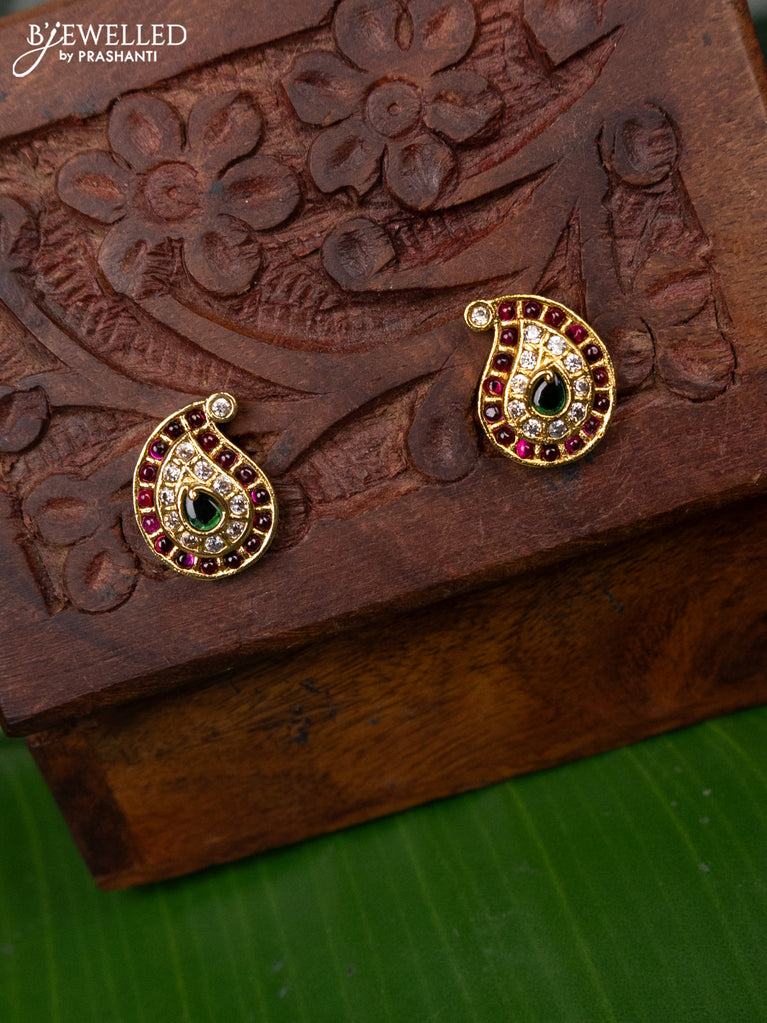 Antique earring manga pattern with kemp & kundan stones and pearl & green beads hanging