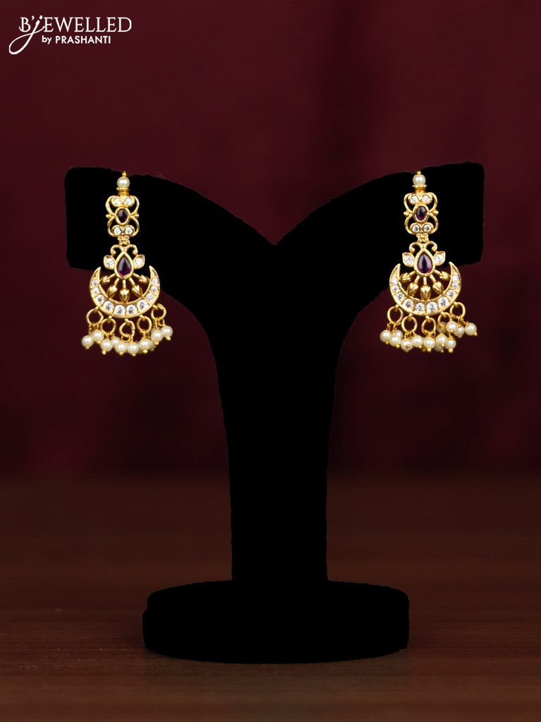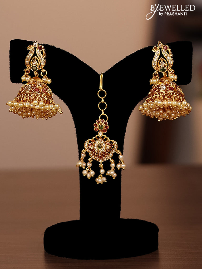 Antique guttapusalu haaram chandbali & maanga pattern with kemp & cz stones and pearl hangings without earring