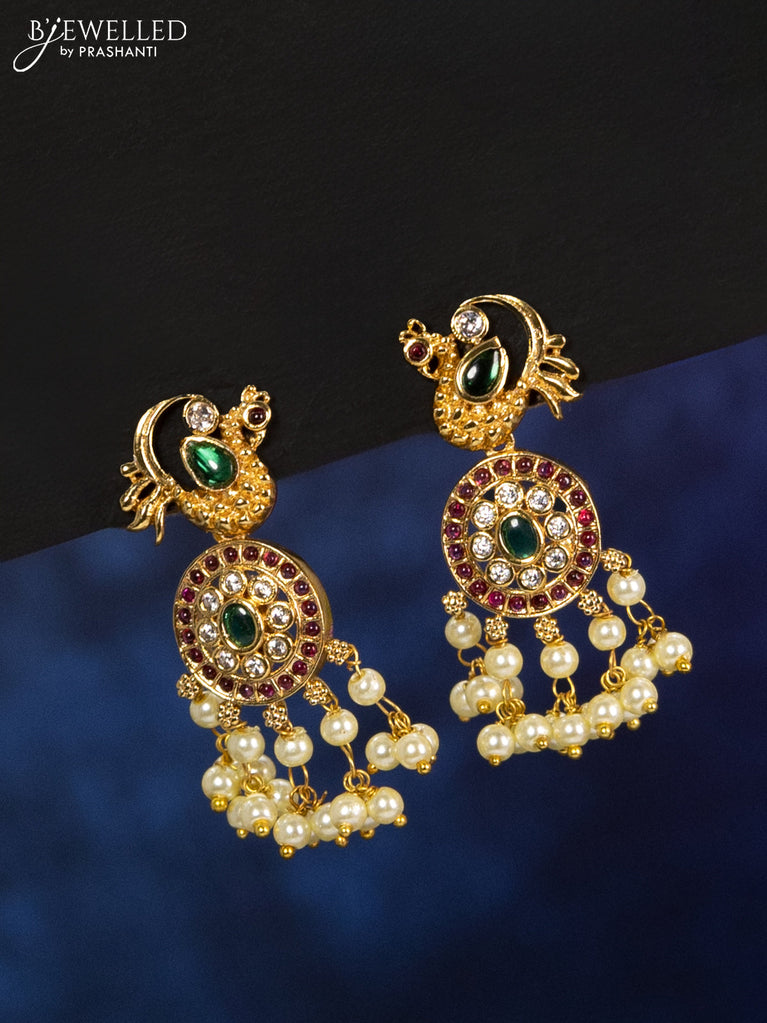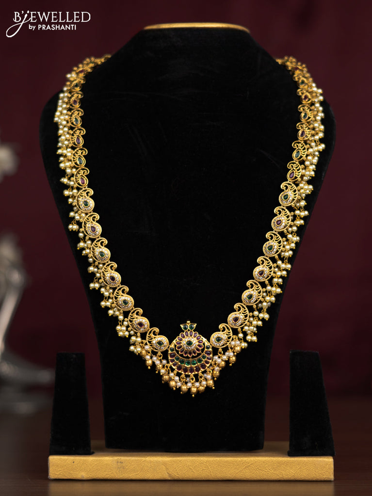 Antique guttapusalu haaram peacock design with kemp & cz stones and pearl hangings without earring