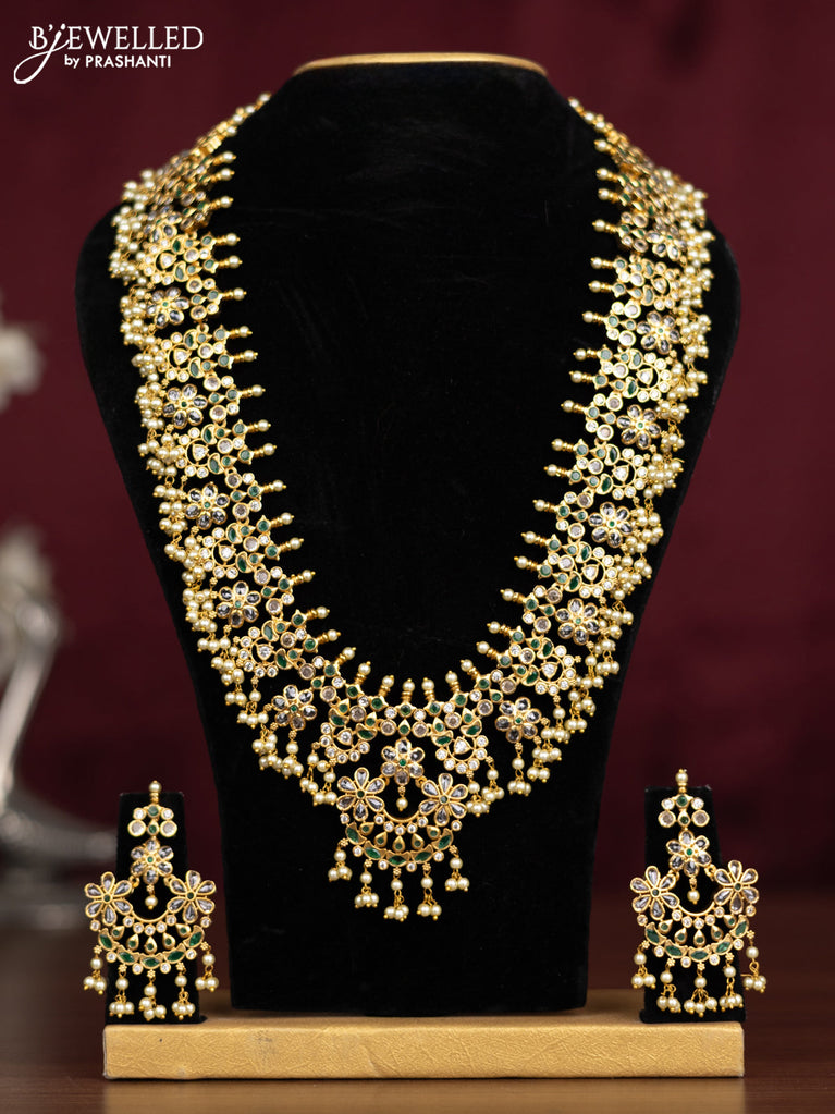 Antique guttapusalu haaram floral design with kemp & cz stones and pearl hangings without earring