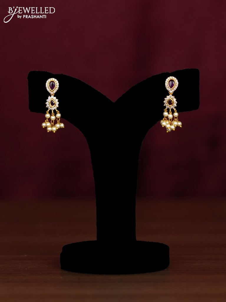Antique Guttapusalu haaram with pink kemp & cz stones and pearl hangings