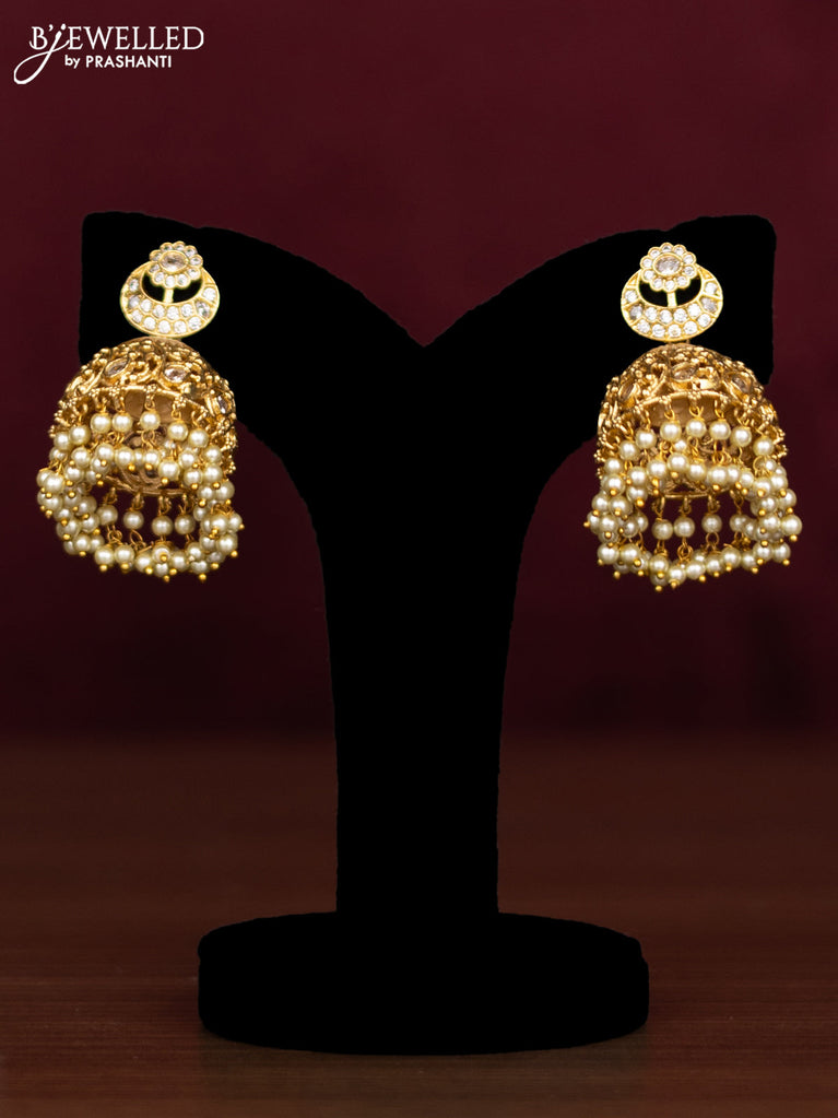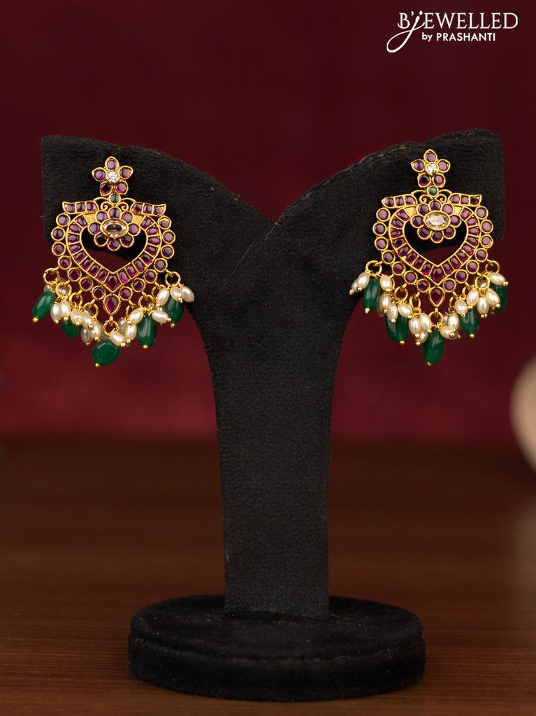 Antique guttapusalu necklace chandbali & manga design with kemp & cz stones and pearl hangings