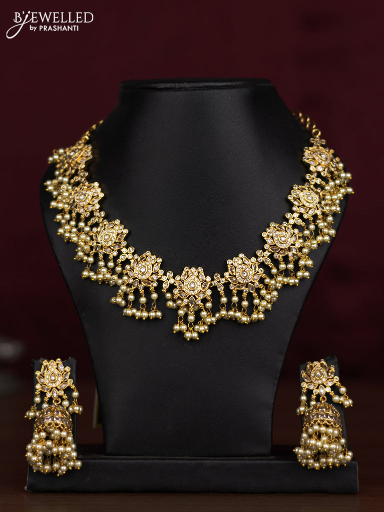 Antique guttapusalu necklace floral design with kemp & cz stones and pearl hangings