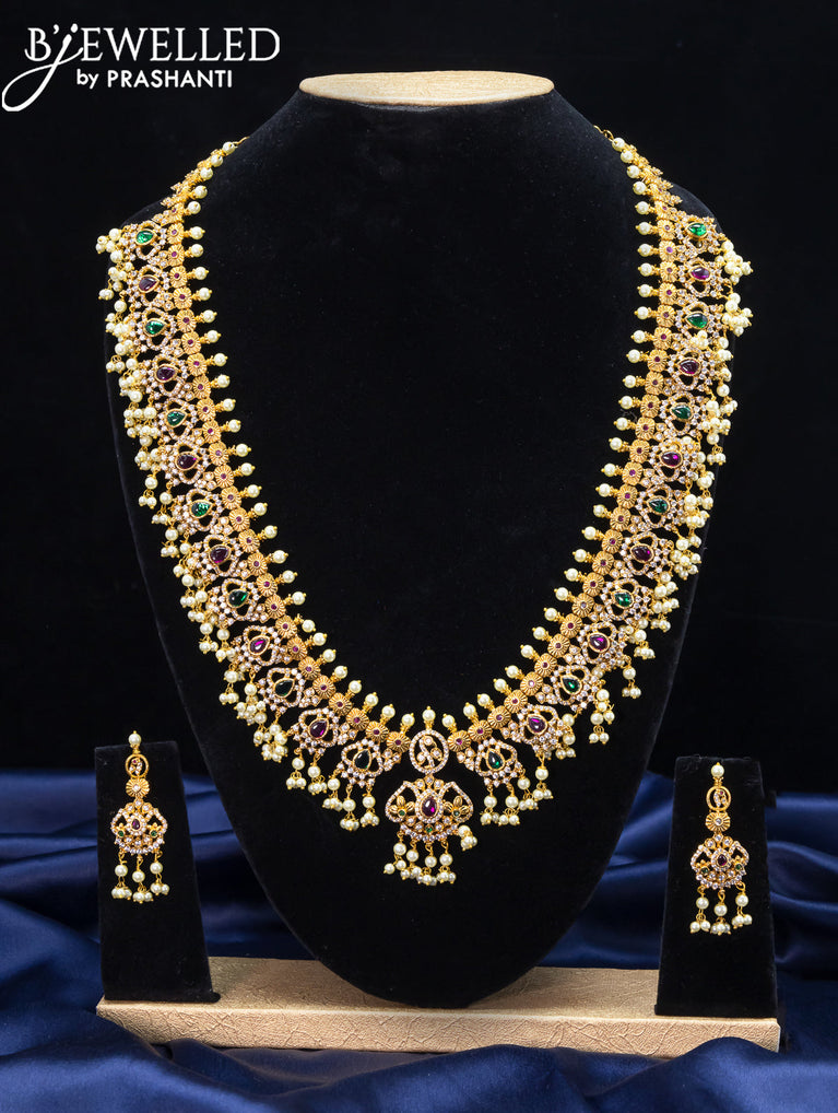 Antique Guttapusalu haaram with kemp & cz stones and pearl hangings
