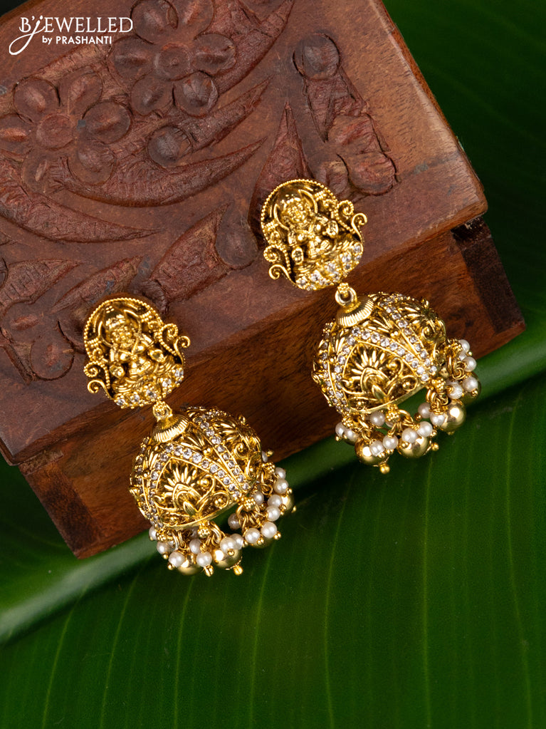 Antique jhumka lakshmi design with cz stones and pearl hangings