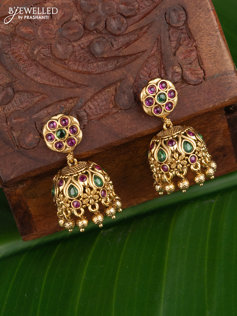 Antique jhumka floral design with kemp & cz stones and beads hangings