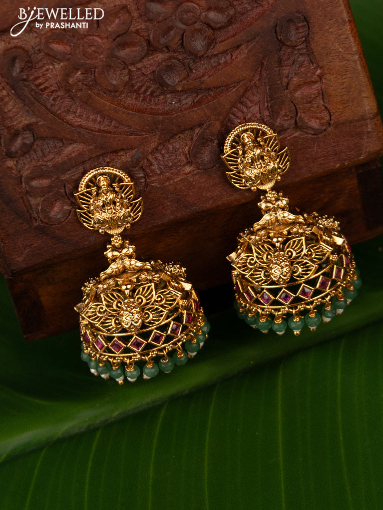 Antique jhumka lakshmi design with kemp stones and green beads hanging