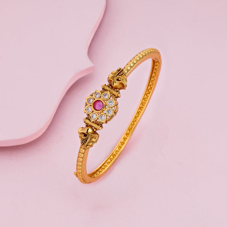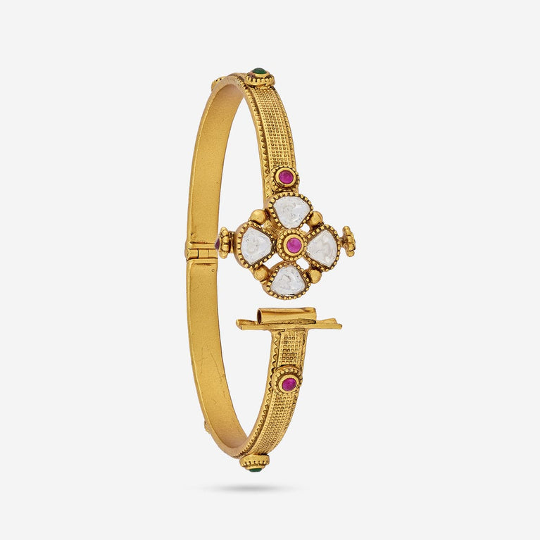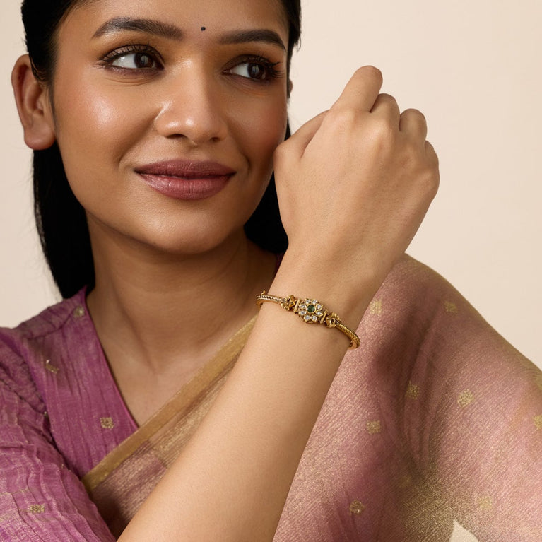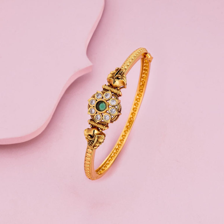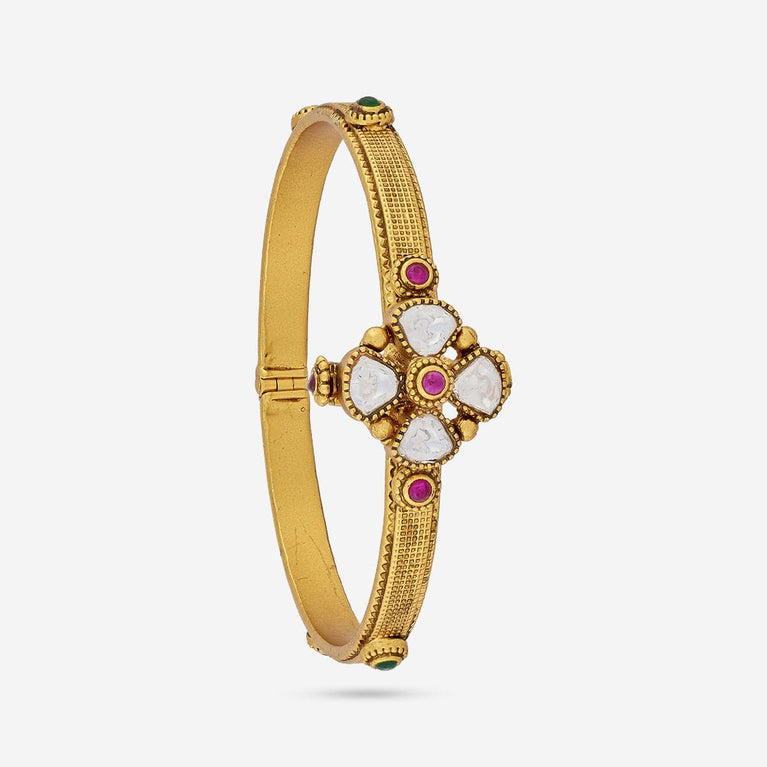 Antique kanti bangle floral design with cz and kemp stones