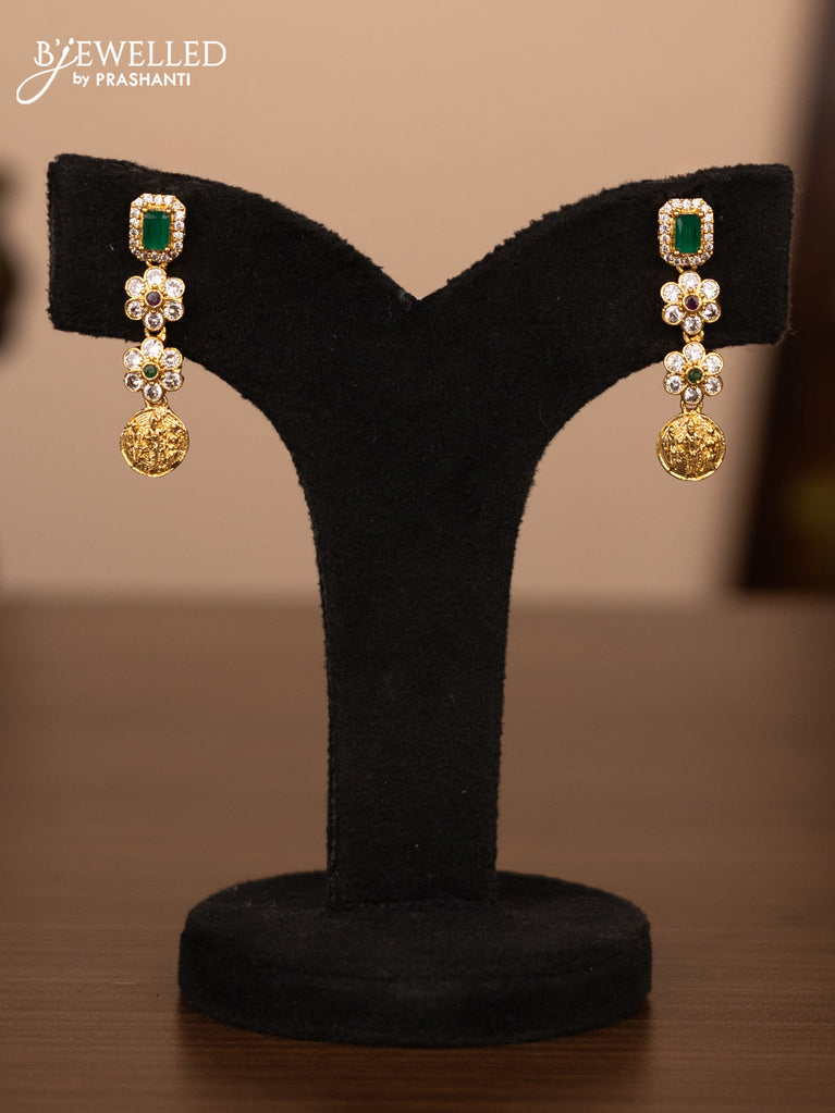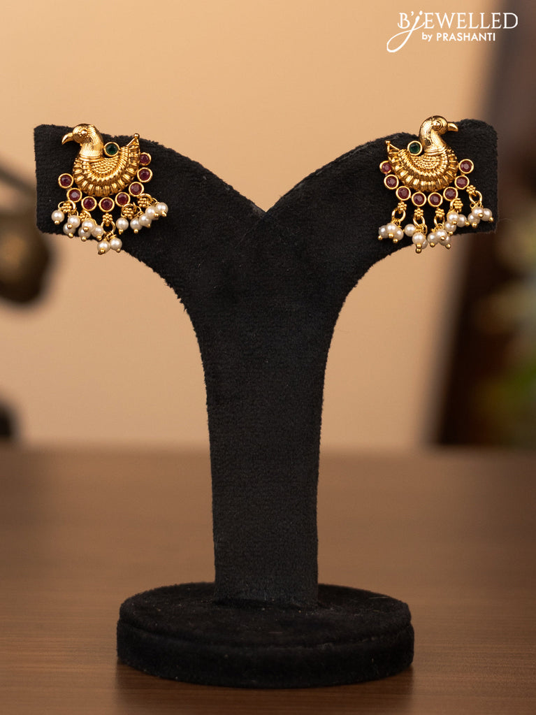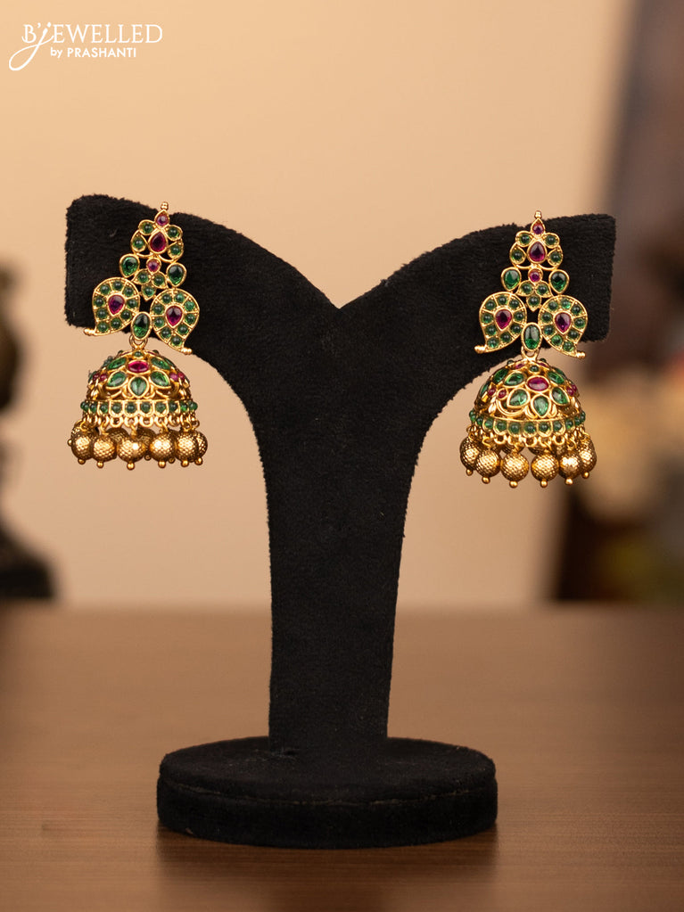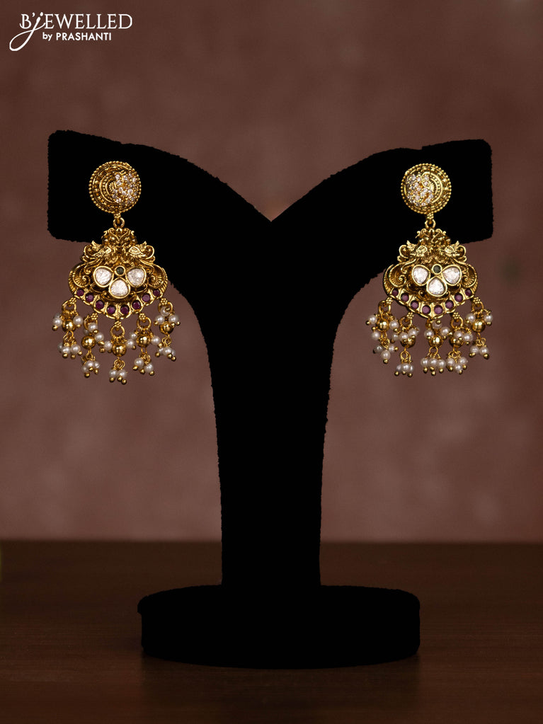 Antique necklace peacock design with kemp & cz stones and pearl & green beads hanging without earrings