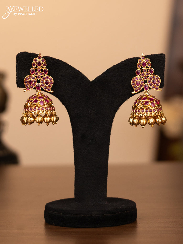 Antique necklace peacock design with kemp stones and golden beads hanging