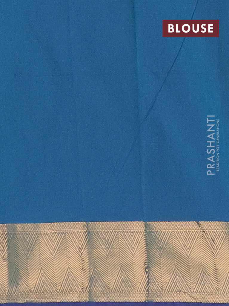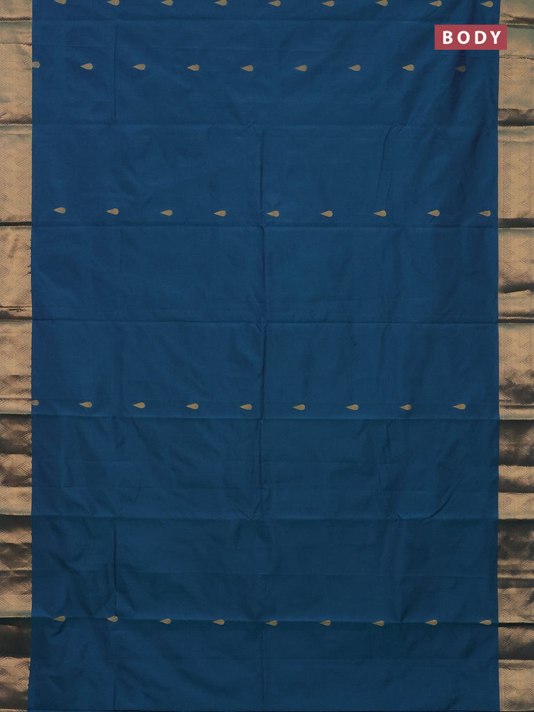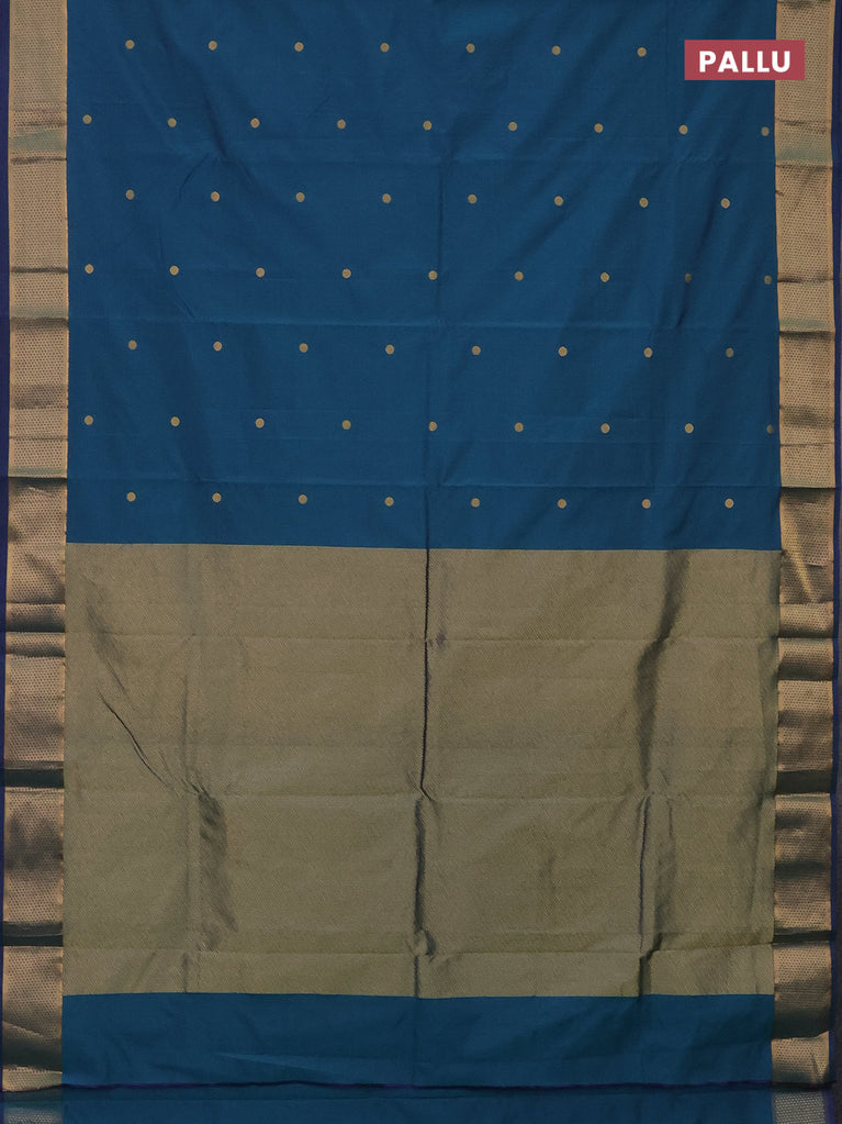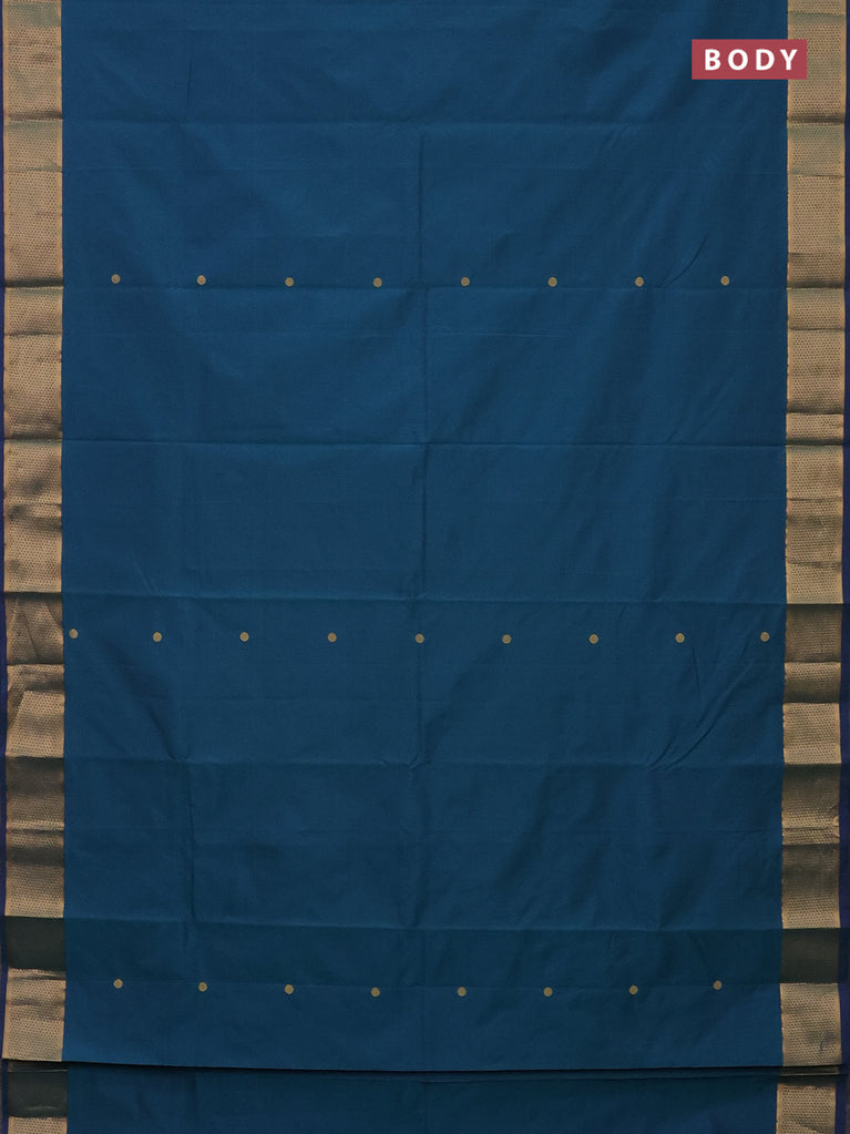 Arani semi silk saree dual shade of teal green with zari woven thilak buttas and zari woven border