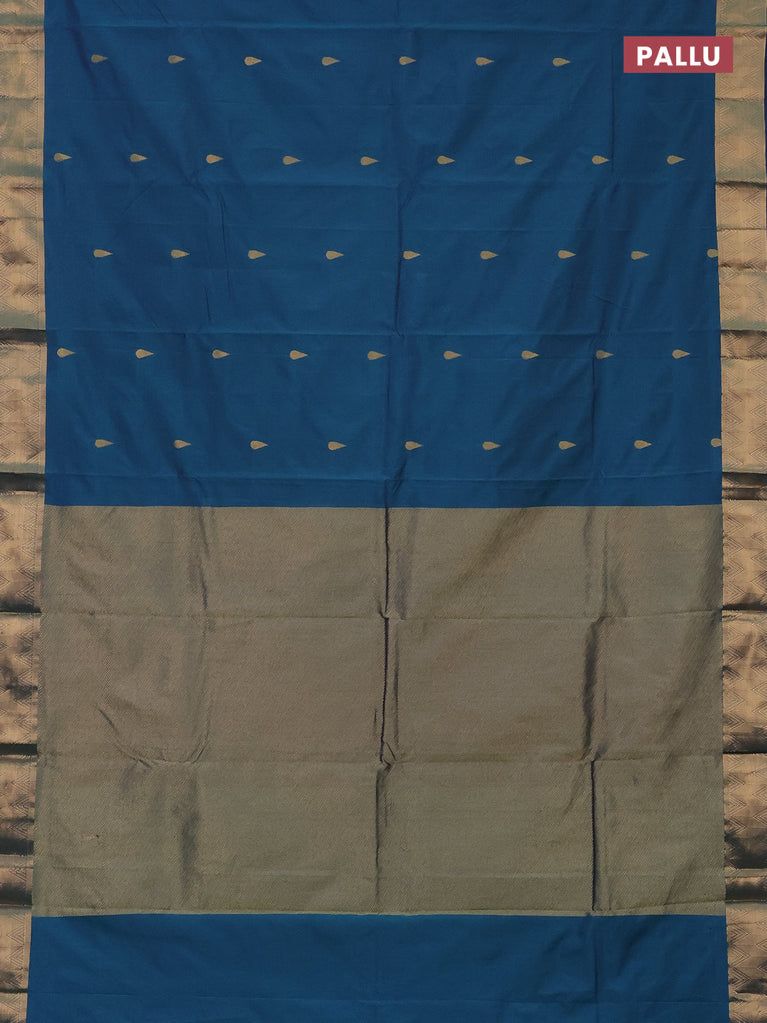 Arani semi silk saree dual shade of teal and green with zari woven buttas and zari woven butta border