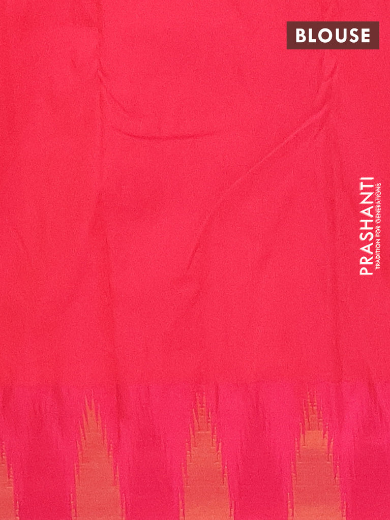 Arani semi silk saree dual shade of teal blue and dual shade of pink with plain body and temple design border