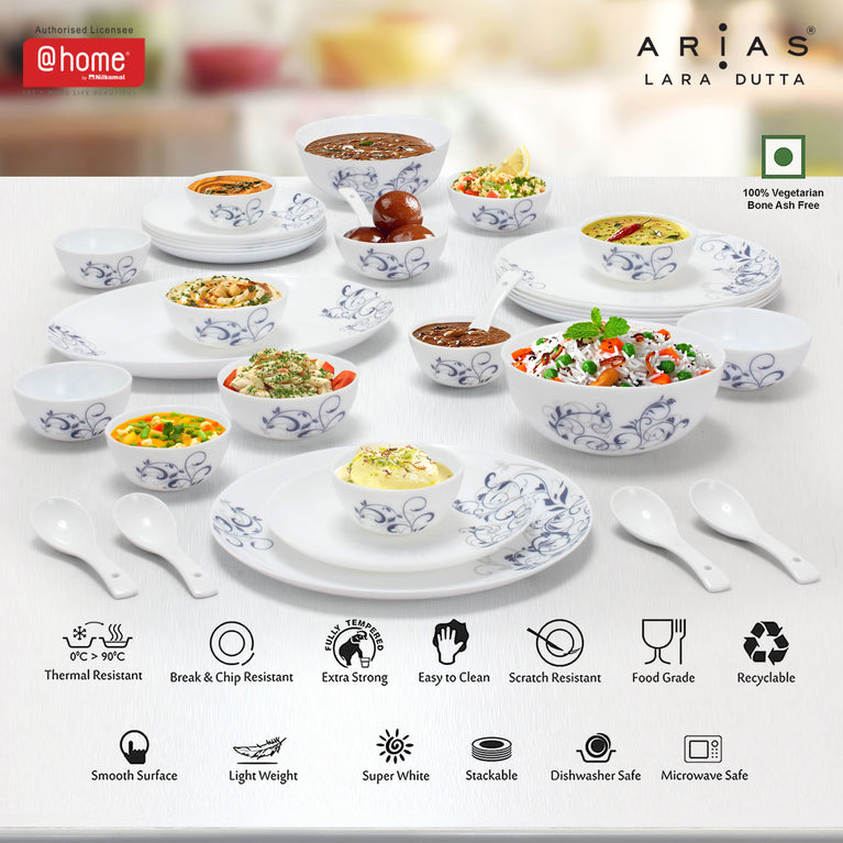 Arias by Lara Dutta Moon Blue Spring Dinner Set - 33 Pieces