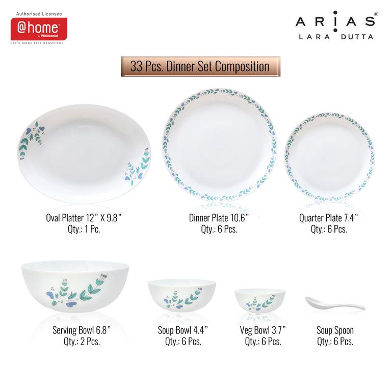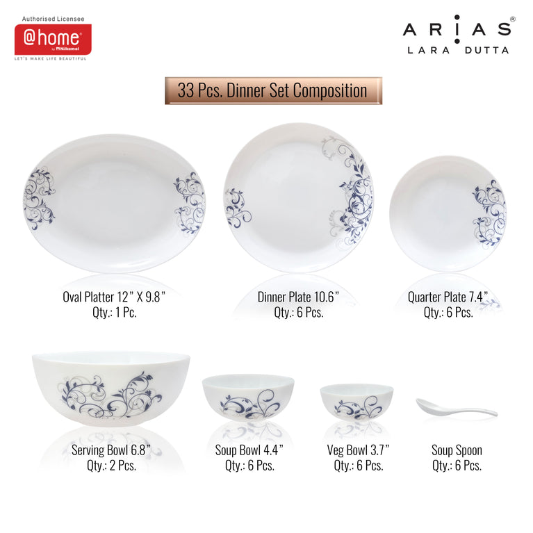 Arias by Lara Dutta Moon Morning Glory Dinner Set - 33 Pieces