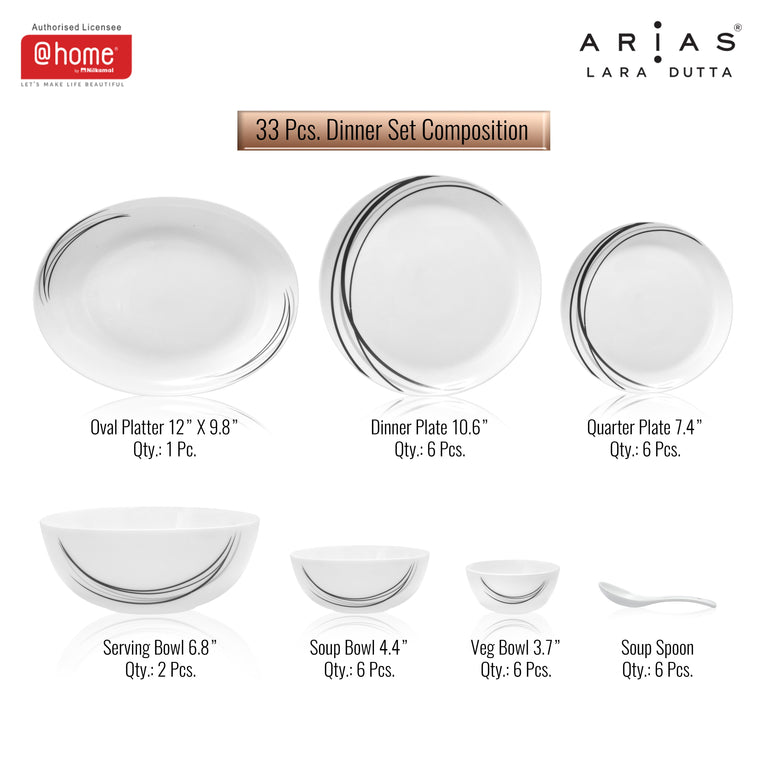 Arias Moon Black Fantasy Dinner Set - 33 Pieces