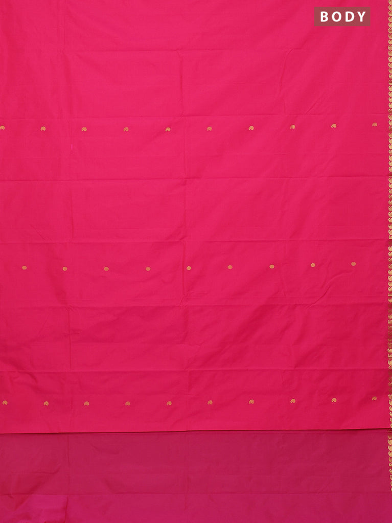 Arani semi silk saree pink with rudhraksha & paisley zari woven buttas and zari woven border