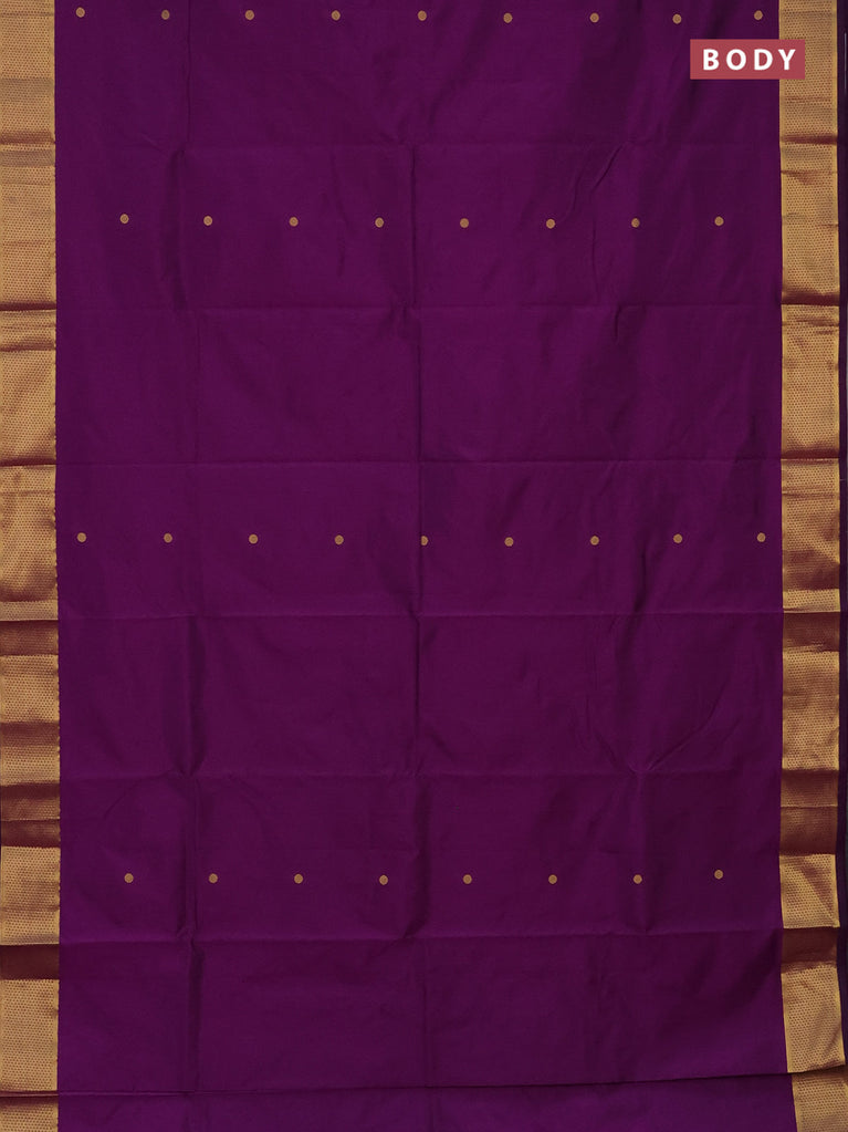Arani semi silk saree purple with copper zari woven buttas in borderless style