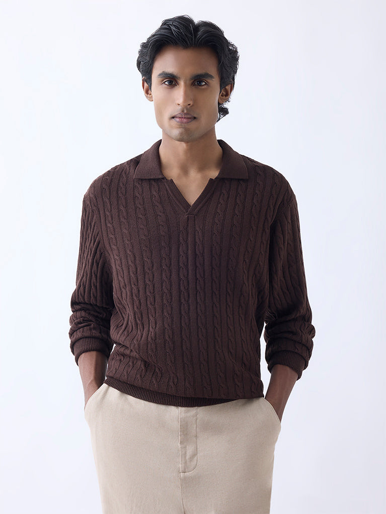 Ascot Dark Brown Cable-Knit Relaxed-Fit Sweater