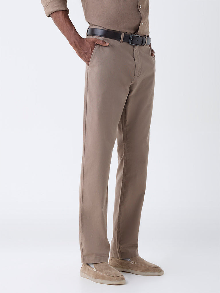 Ascot Dark Taupe Relaxed-Fit Mid-Rise Cotton-Blend Chinos