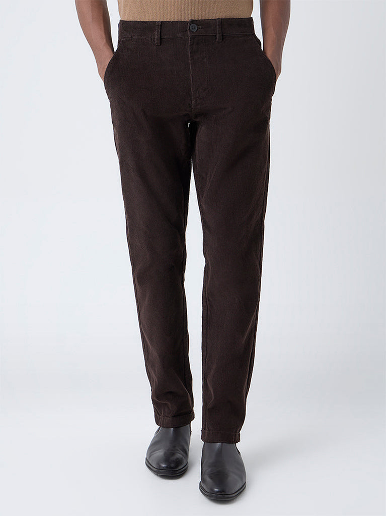 Ascot Dark Brown Mid-Rise Relaxed-Fit Corduroy Chinos