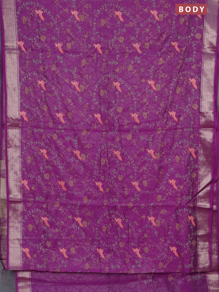 Assam silk saree purple with allover zari weaves & embroidery work buttas and zari woven border