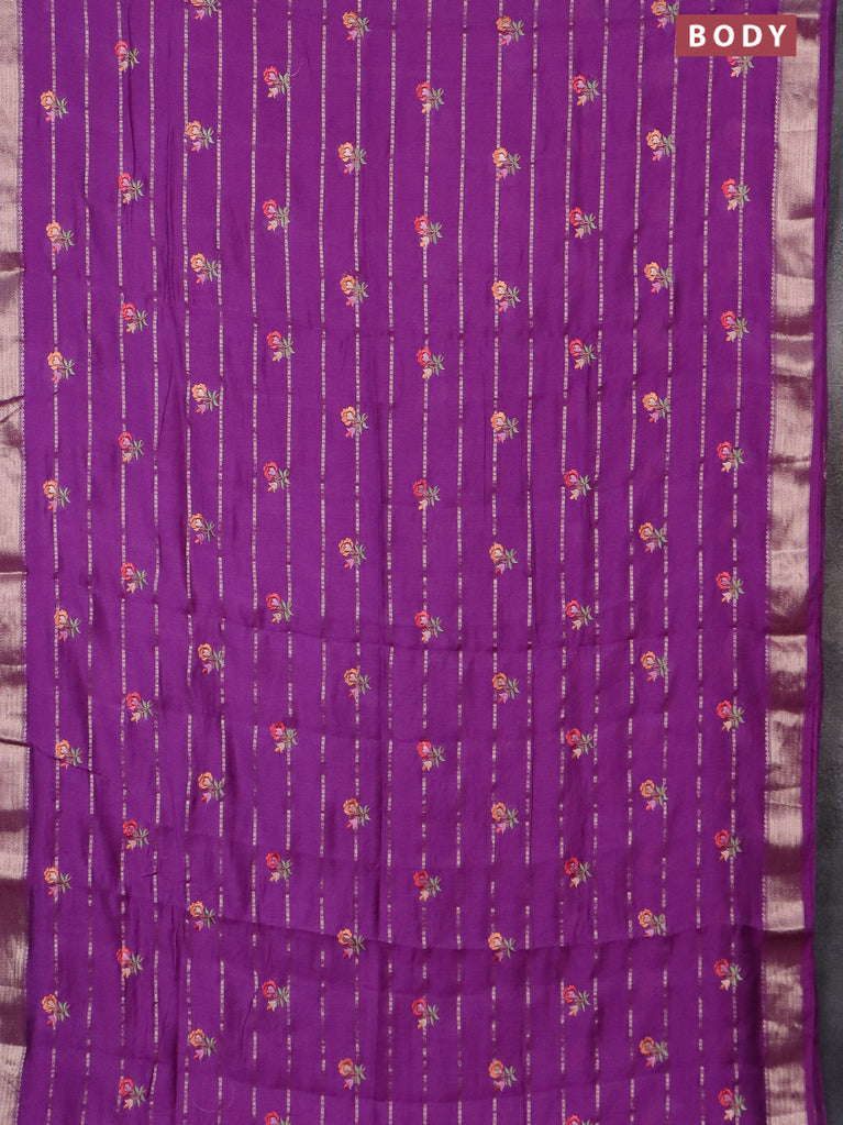 Assam silk saree purple with allover zari weaves & embroidery work and zari woven border