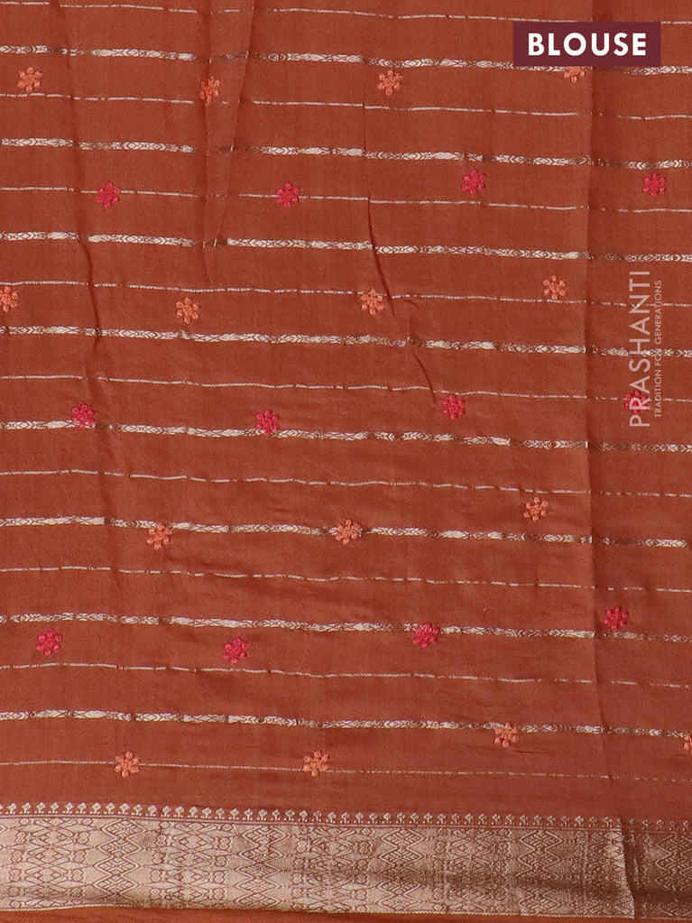 Assam silk saree rust shade with allover zari weaves & floral embroidery work buttas and zari woven border