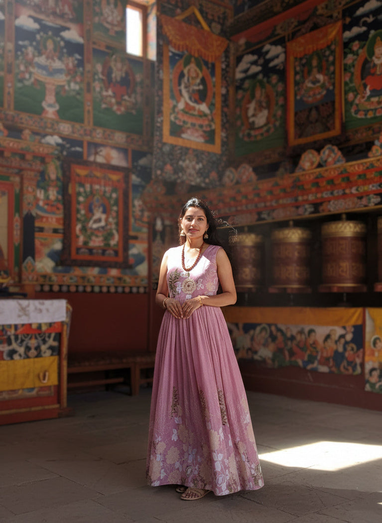 Embrace elegance with this enchanting baby pink georgette long dress, perfect for those special moments when you want to feel graceful and poised. The delicate floral digital print adds a touch of nature-inspired beauty to the soft, flowing fabric, creating a romantic silhouette that flatters every frame. Georgette's lightweight drape ensures comfort throughout the day, whether you're attending a celebration or enjoying a leisurely evening out. The gentle hue complements all skin tones, making this dress a versatile addition to your wardrobe that you'll reach for again and again.
