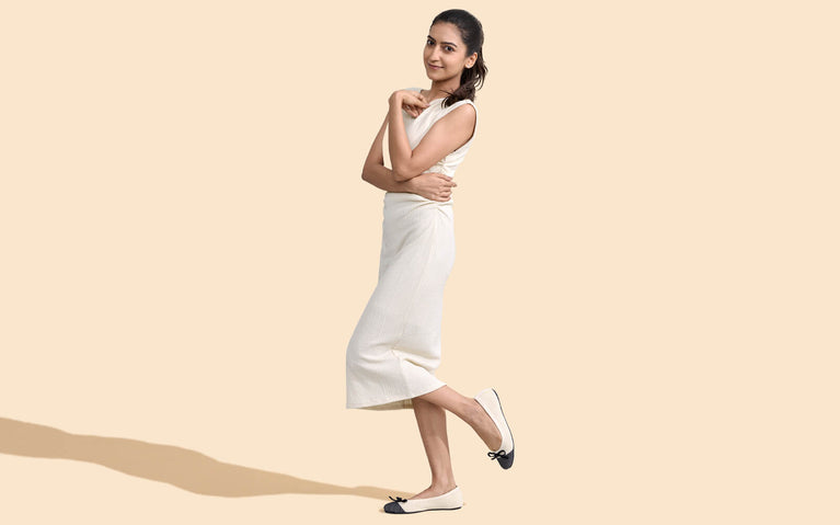 Handloom cotton is handwoven by our weavers on mechanical looms. The process is time and labour-intensive, using techniques that have been passed down across generations of artisans. The resultant fabric is extraordinarily soft, breathable and resilient, and also drapes very well. Using handloom cotton not only helps us to work with smaller weavers but also plays an important role in reducing the environmental footprint of the garments we produce.