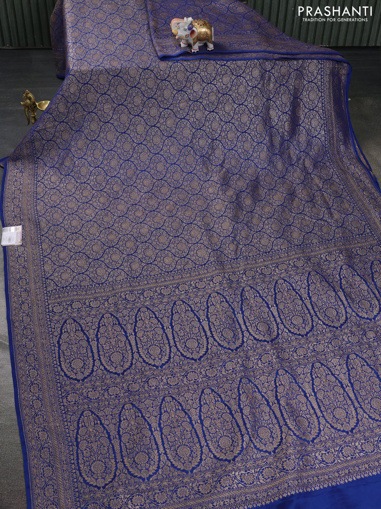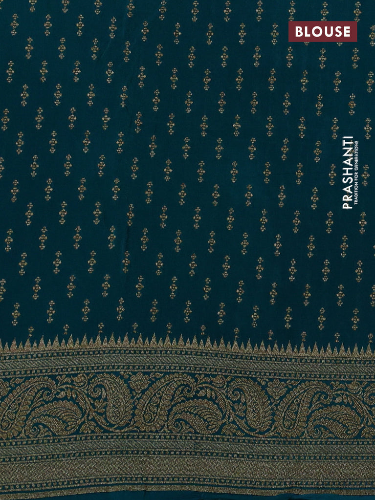 Banarasi crepe saree peacock blue with allover thread & zari brocade weaves and woven border