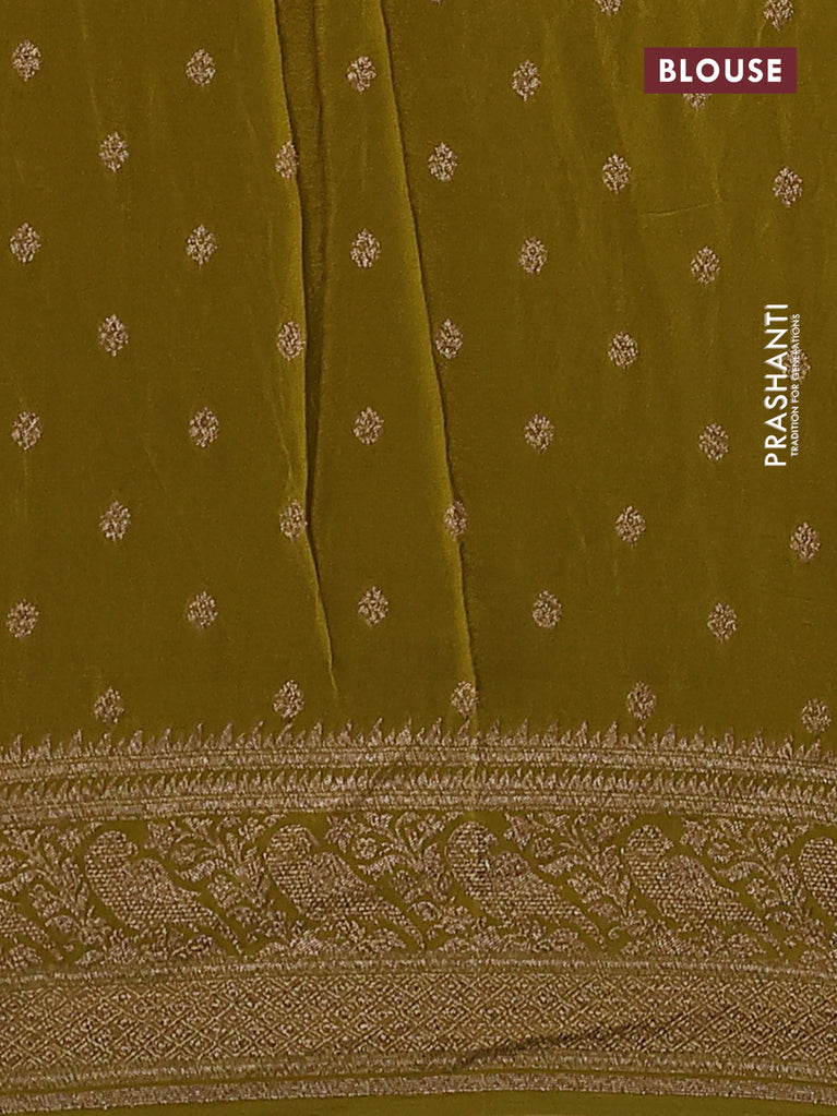 Banarasi crepe saree lime green with allover thread & zari weaves and woven border